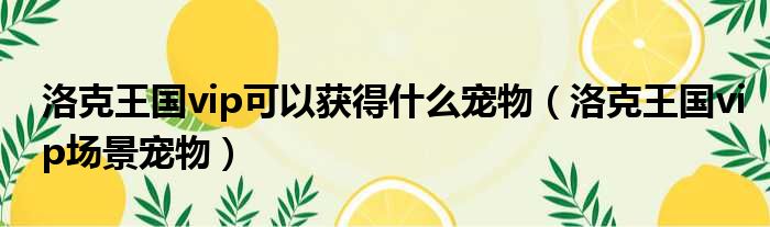 导读 大家好,今天小六子来为大家解答以下的问题,关于洛克王国vip可以获得什么宠物,洛克王国vip场景宠物这个很多人还不知道,现在让我们一起来