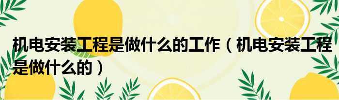 机电安装工程是做什么的工作(机电安装工程是做什么的)