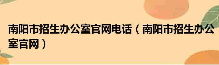 南阳市招生办公室官网电话(南阳市招生办公室官网)
