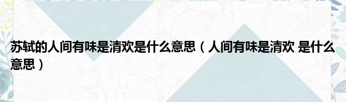 苏轼的人间有味是清欢是什么意思(人间有味是清欢 是什么意思)