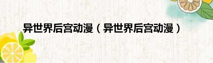 异世界后宫动漫(异世界后宫动漫)