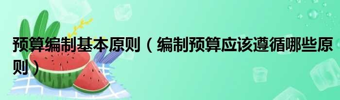 预算编制基本原则(编制预算应该遵循哪些原则)