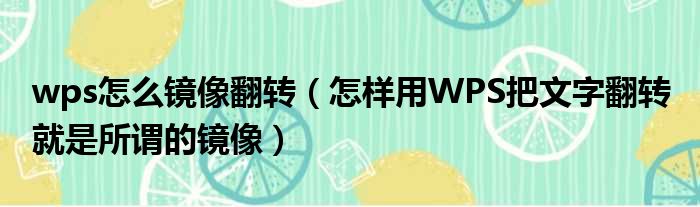 导读 大家好,今天小六子来为大家解答以下的问题,关于wps怎么镜像翻转,怎样用WPS把文字翻转 就是所谓的镜像这个很多人还不知道,现在让我们一