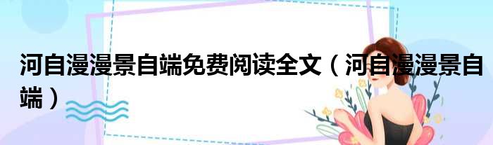 导读 大家好,今天小六子来为大家解答以下的问题,关于河自漫漫景自端免费阅读全文,河自漫漫景自端这个很多人还不知道,现在让我们一起来看看吧