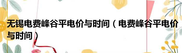 无锡电费峰谷平电价与时间(电费峰谷平电价与时间)
