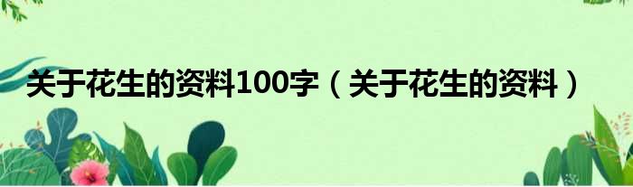 大家好,今天小六子来为大家解答以下的问题,关于关于花生的资料100字,关于花生的资料这个很多人还不知道,现在让我们一起来看看吧!