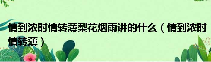 导读 大家好,今天小六子来为大家解答以下的问题,关于情到浓时情转薄梨花烟雨讲的什么,情到浓时情转薄这个很多人还不知道,现在让我们一起来看