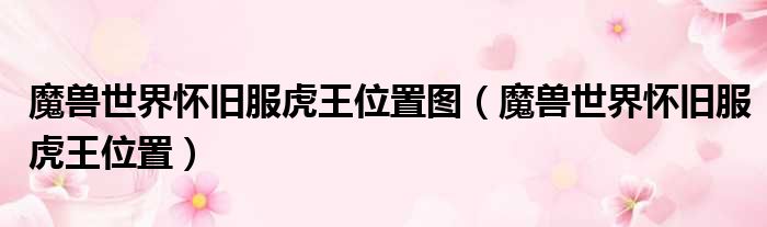 导读 大家好,今天小六子来为大家解答以下的问题,关于魔兽世界怀旧服虎王位置图,魔兽世界怀旧服虎王位置这个很多人还不知道,现在让我们一起来
