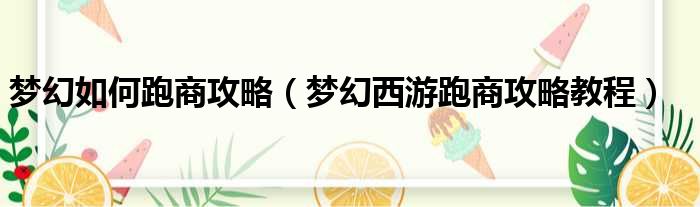 梦幻如何跑商攻略(梦幻西游跑商攻略教程)