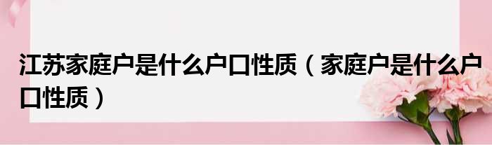 江苏家庭户是什么户口性质(家庭户是什么户口性质)