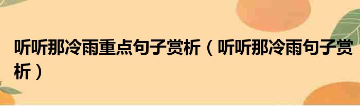 听听那冷雨重点句子赏析(听听那冷雨句子赏析)