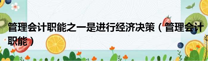 管理会计职能之一是进行经济决策(管理会计职能)