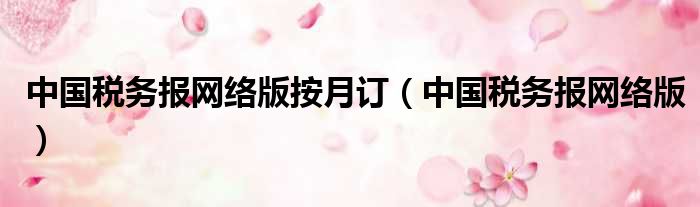 导读 大家好,今天小六子来为大家解答以下的问题,关于中国税务报网络版按月订,中国税务报网络版这个很多人还不知道,现在让我们一起来看看吧!1