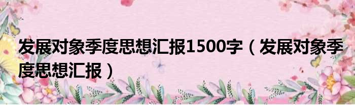 发展对象季度思想汇报1500字(发展对象季度思想汇报)