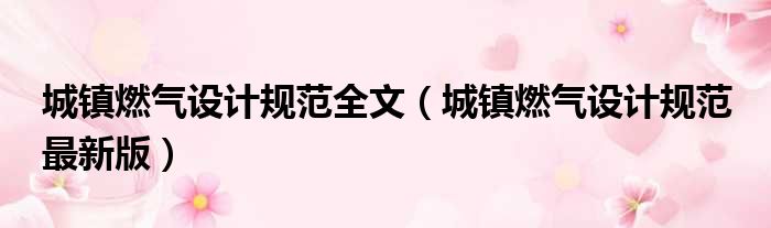 城镇燃气设计规范全文(城镇燃气设计规范 最新版)