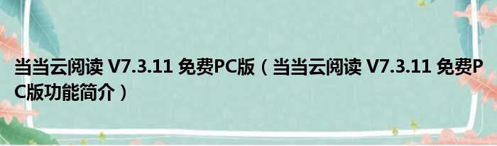 当当云阅读 V7.3.11 免费PC版(当当云阅读 V7.3.11 免费PC版功能简介)