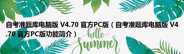 自考准题库电脑版 V4.70 官方PC版(自考准题库电脑版 V4.70 官方PC版功能简介)