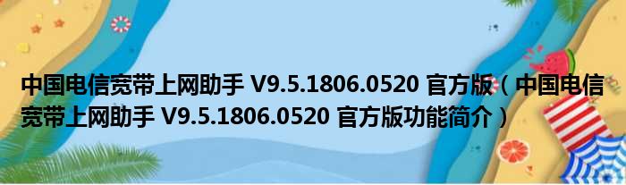 中国电信宽带上网助手 V9.5.1806.0520 官方版(中国电信宽带上网助手 V9.5.1806.0520 官方版功能简介)