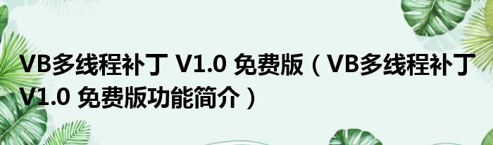 VB多线程补丁 V1.0 免费版(VB多线程补丁 V1.0 免费版功能简介)