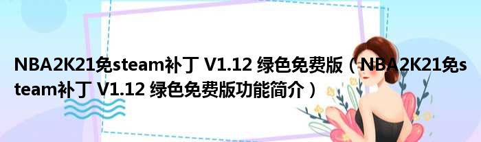 NBA2K21免steam补丁 V1.12 绿色免费版(NBA2K21免steam补丁 V1.12 绿色免费版功能简介)