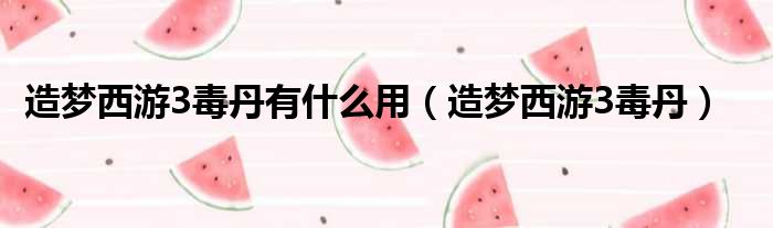 造梦西游3毒丹有什么用(造梦西游3毒丹)