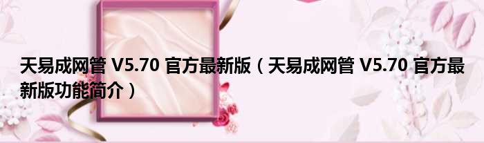 天易成网管 V5.70 官方最新版(天易成网管 V5.70 官方最新版功能简介)
