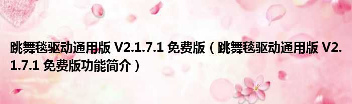 导读 大家好,关于跳舞毯驱动通用版 V2 1 7 1 免费版,跳舞毯驱动通用版 V2 1 7 1 免费版功能简介这个很多人还不知道,小勒来为大家解答以上的