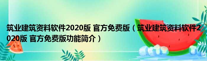 导读 大家好,关于筑业建筑资料软件2020版 官方免费版,筑业建筑资料软件2020版 官方免费版功能简介这个很多人还不知道,小勒来为大家解答以上的