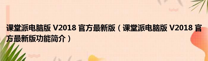 课堂派电脑版 V2018 官方最新版(课堂派电脑版 V2018 官方最新版功能简介)