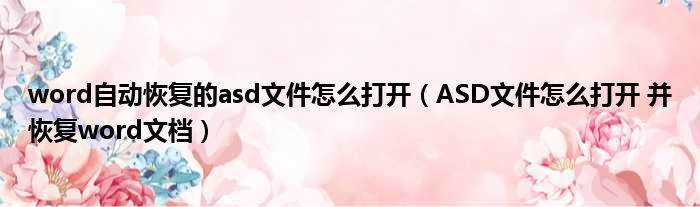 word自动恢复的asd文件怎么打开(ASD文件怎么打开 并恢复word文档)