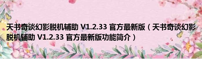 天书奇谈幻影脱机辅助 V1.2.33 官方最新版(天书奇谈幻影脱机辅助 V1.2.33 官方最新版功能简介)