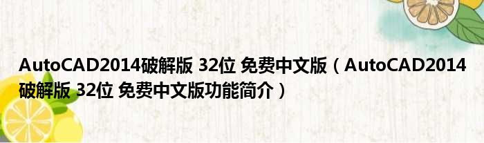 AutoCAD2014破解版 32位 免费中文版(AutoCAD2014破解版 32位 免费中文版功能简介)