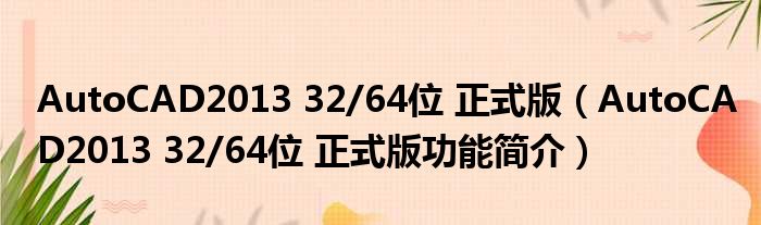 AutoCAD2013 32/64位 正式版(AutoCAD2013 32/64位 正式版功能简介)