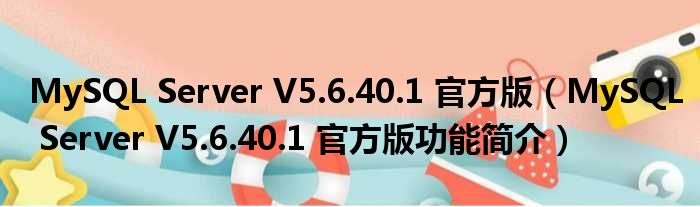 MySQL Server V5.6.40.1 官方版(MySQL Server V5.6.40.1 官方版功能简介)