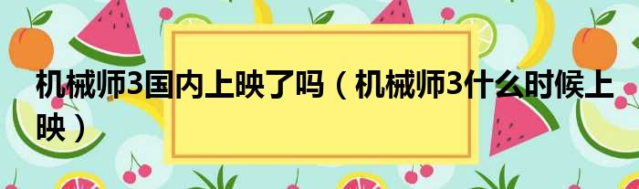 导读 大家好,今天小六子来为大家解答以下的问题,关于机械师3国内上映了吗,机械师3什么时候上映这个很多人还不知道,现在让我们一起来看看吧!1