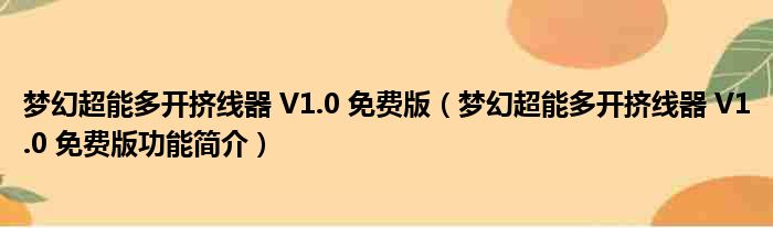 梦幻超能多开挤线器 V1.0 免费版(梦幻超能多开挤线器 V1.0 免费版功能简介)