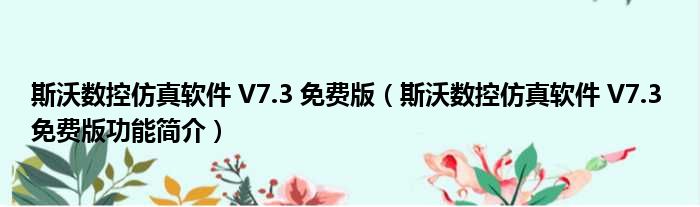 斯沃数控仿真软件 V7.3 免费版(斯沃数控仿真软件 V7.3 免费版功能简介)
