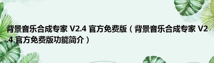 背景音乐合成专家 V2.4 官方免费版(背景音乐合成专家 V2.4 官方免费版功能简介)