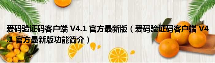 导读 大家好,关于爱码验证码客户端 V4 1 官方最新版,爱码验证码客户端 V4 1 官方最新版功能简介这个很多人还不知道,小勒来为大家解答以上的