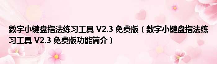 导读 大家好,关于数字小键盘指法练习工具 V2 3 免费版,数字小键盘指法练习工具 V2 3 免费版功能简介这个很多人还不知道,小勒来为大家解答以
