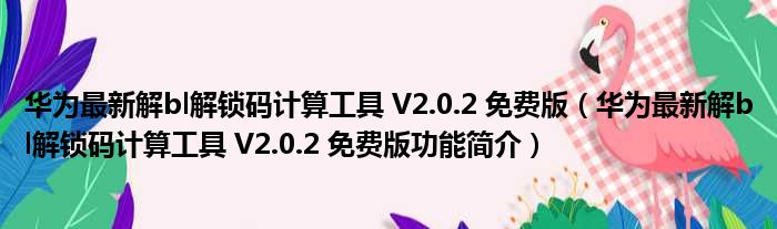 华为最新解bl解锁码计算工具 V2.0.2 免费版(华为最新解bl解锁码计算工具 V2.0.2 免费版功能简介)