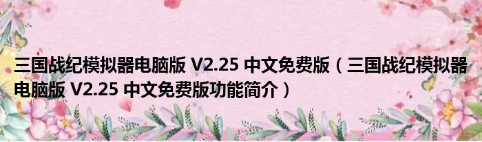 三国战纪模拟器电脑版 V2.25 中文免费版(三国战纪模拟器电脑版 V2.25 中文免费版功能简介)