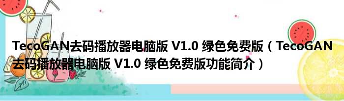 TecoGAN去码播放器电脑版 V1.0 绿色免费版(TecoGAN去码播放器电脑版 V1.0 绿色免费版功能简介)
