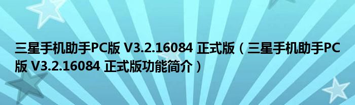 三星手机助手PC版 V3.2.16084 正式版(三星手机助手PC版 V3.2.16084 正式版功能简介)