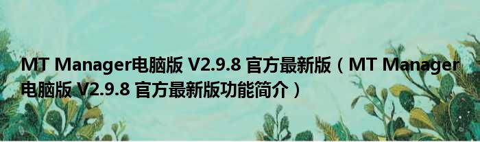 MT Manager电脑版 V2.9.8 官方最新版(MT Manager电脑版 V2.9.8 官方最新版功能简介)