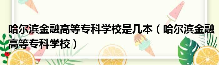 哈尔滨金融高等专科学校是几本(哈尔滨金融高等专科学校)