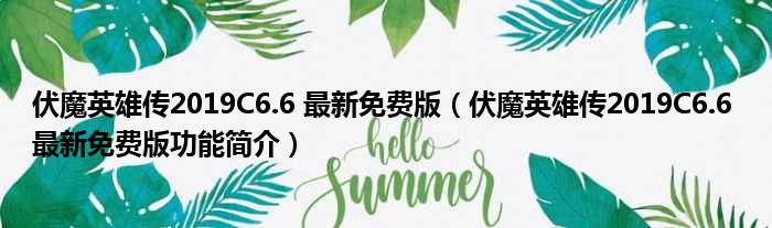 伏魔英雄传2019C6.6 最新免费版(伏魔英雄传2019C6.6 最新免费版功能简介)