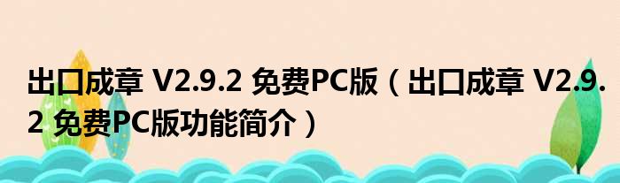出口成章 V2.9.2 免费PC版(出口成章 V2.9.2 免费PC版功能简介)