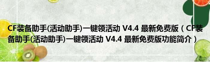 导读 大家好,关于CF装备助手(活动助手)一键领活动 V4 4 最新免费版,CF装备助手(活动助手)一键领活动 V4 4 最新免费版功能简介这个很多人还