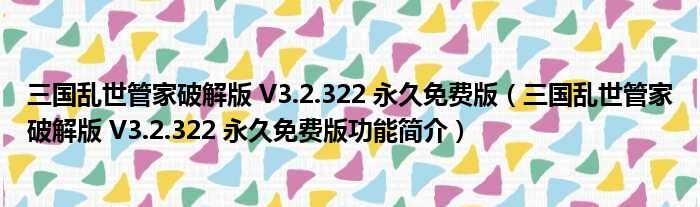 三国乱世管家破解版 V3.2.322 永久免费版(三国乱世管家破解版 V3.2.322 永久免费版功能简介)
